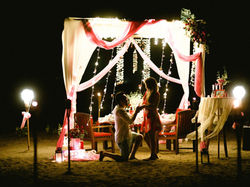Begin with a heartfelt video reveal at the hotel lounge, followed by a blindfolded journey to a secluded, candlelit beach setting. She’ll open her eyes to "Marry Me" lights, a heart-shaped rose petal arrangement, and a romantic pergola. Celebrate with sparkling wine, capture the sunset, share a sand pouring ceremony, and enjoy a private dinner under the stars.